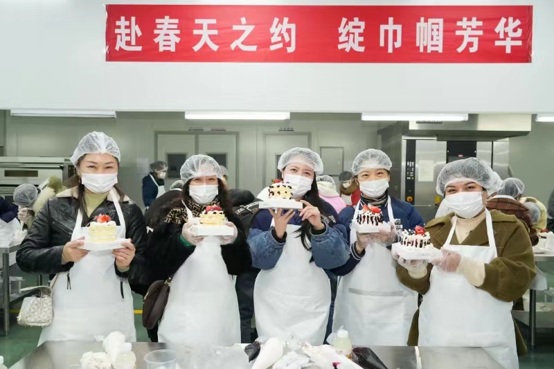 活動現場,在專業(yè)烘焙老師指導下,供水女職工瞬間化身“甜點大師”,發(fā)揮想象力和創(chuàng)造力現學現做。從做蛋糕前的準備到蛋胚的擺放、奶油的涂抹、再到最后的造型裝飾,每個步驟都充滿了創(chuàng)意和樂趣,最終的成品蛋糕也各具風格。